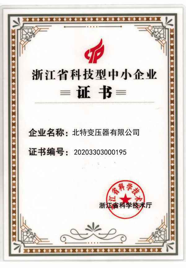 科技型中小企业证书