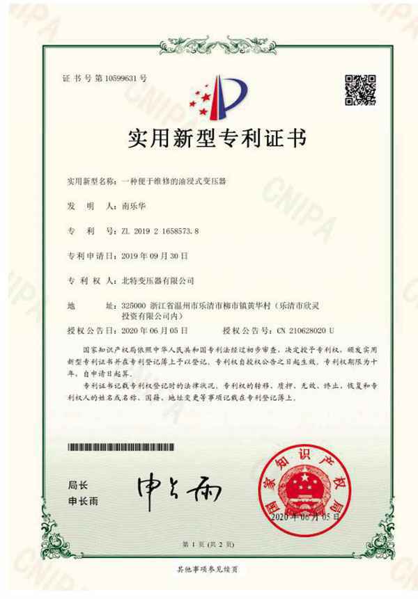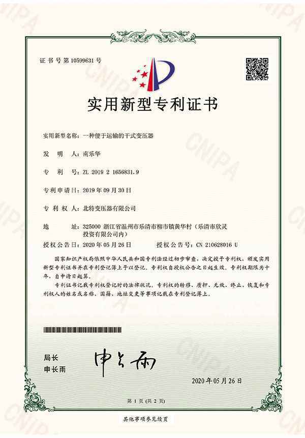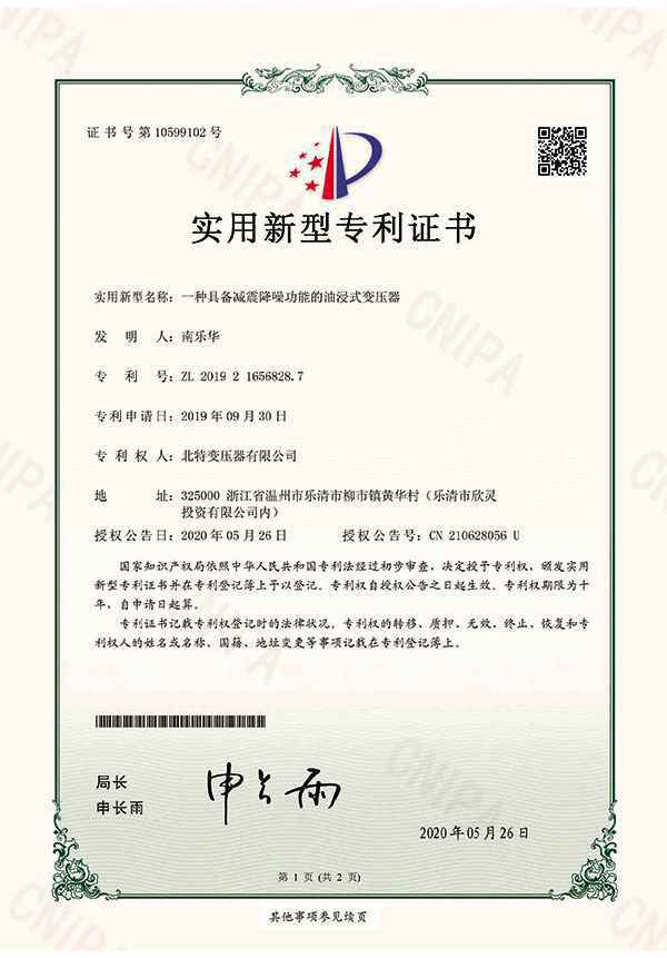 实用新型专利证书